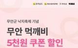 무안 김금덕 기자2024. 10.25[정보신문 = 김금덕 기자] 무안군(군수 김산)은 무안갯벌낙지축제와 연계하여 오는 26일부터 27일까지 2일간 공공배달앱 ‘먹깨비’ 할인이벤트를 추진한다. 이번 이벤트는 먹깨비 앱을 통해 1만 5천 원 이상 주문 시 일일 선착순 200명에게 5,000원 할인쿠폰이 제공된다. 1인당 1회 혜택을 받을 수 있으며, 가맹점 할인 등 타 할인쿠폰과 중복 사용이 가능하다. 또한 먹깨비에서 지역사랑상품권 사용 시 5%(최대 2,000원) 먹깨비 포인트로 되돌려 받을 수 있고, 착한가격업소 이용 시에도 2천원을 즉시 할인한다. ...