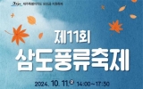 제주시 김금덕 기자2024. 10.07[정보신문 = 김금덕 기자] 제주시 삼도2동은 오는 10월 11일(금), 12일(토) 이틀간 삼도2동주민센터 일원 및 관덕정 광장에서 제11회 삼도풍류축제를 개최한다. 삼도풍류축제추진위원회(위원장 이재성)가 주최하는 이번 축제에서는 지역주민과 관광객들이 도심 속 풍류를 즐길 수 있도록 다채로운 공연과 먹거리 체험 프로그램이 운영된다. 주요 프로그램으로는 ▲삼도풍류백일장 및 사생대회, ▲거리 노래방, ▲가요제 및 플래시몹 경연, ▲전통음식 체험 및 삼도풍류포차, ▲북초·남초 어린이 공연, ▲천연염색 및 안전체험 프로그램, ...
