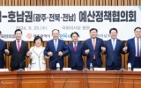 전남 김금덕 기자2024. 09.25[정보신문 = 김금덕 기자] 광주광역시와 국민의힘은 25일 오후 국회에서 ‘2024년 호남권 예산정책협의회’를 갖고, 지역현안 해결과 내년도 국비 확보에 힘을 모으기로 했다. 이날 회의는 국민의힘이 전국 광역자치단체를 대상으로 순회 실시하는 권역별 예산정책협의회로, 광주시·전남도·전북도 등 호남권 3개 시‧도가 참여했다. 이날 회의에는 강기정 광주광역시장을 비롯해 김영록 전남도지사, 김관영 전북도지사가 참석했다. 국민의힘에서는 추경호 원내대표, 구자근 예결위간사, 조지연 원내대변인 등 중앙당 지도부와 김정현 광...