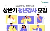 서구 남재옥 기자2026. 01.27[정보신문 = 남재옥 기자] 광주광역시 서구(구청장 김이강)는 청년들이 강의 기획부터 운영까지 직접 참여하는 ‘재능공유 청년강사’ 사업을 본격 추진한다. 이 사업은 재능 있는 청년이 자신의 경험과 전문성을 바탕으로 강의를 직접 설계하고 또래 청년과 공유하도록 지원하는 청년 주도형 프로그램이다. 모집 대상은 취업·진로, IT·미디어, 문화예술, 금융·경제 등 다양한 분야에서 재능을 보유한 서구 청년(19세~39세)이다. 서구는 분야별 최대 3명, 총 10명의 청년강사를 선발하며 강의 경험이 없는 청년도 참여 가능하다. 선발...