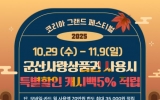 군산 김금덕 기자2025. 10.27[정보신문 = 김금덕 기자] 군산시가 오는 29일부터 11월 9일까지 12일간 정부가 추진하는 ‘코리아 그랜드 페스티벌’에 참여해 군산사랑상품권 이용자에게 파격적인 추가 혜택을 제공한다. 이번 행사는 ‘희망이 되는 소비, 함께 성장하는 경제’를 슬로건으로 한 대한민국 최대 규모의 국가통합 소비 활성화 프로젝트로 시민 소비 촉진과 지역 경제 회복을 목표로 하고 있다. 행사 기간 내에 군산시는 모바일 및 카드형 군산사랑상품권을 사용하는 소비자에게 기존 할인율 13%에 더해 추가로 5% 캐시백으로 적립해주는 특별 행사를 진행...