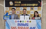 전남 김금덕 기자2025. 10.16[정보신문 = 김금덕 기자] 전라남도는 국내 최고 권위의 SNS 시상식인 ‘2025 대한민국 SNS 대상(KOREA SNS AWARD)’에서 광역자치단체 부문 최우수상을 수상했다고 밝혔다. 대한민국 SNS 대상은 유튜브, 블로그, 인스타그램, 페이스북 등 SNS 활용 현황을 종합 평가해, 국민과 활발히 소통하는 기업과 공공기관을 선정하여 시상하는 국내 최고 권위의 시상식이다. 올해는 130여개 기업과 기관이 참여했으며, 정량평가(30%), 심사위원 평가(40%), 전문가평가(20%), 일반인 투표(10%)를 종합해 수상기...