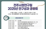 전주 남재옥 기자2026. 01.26[정보신문 = 남재옥 기자] 전주시정연구원(원장 박미자, 이하 연구원)은 개원 2주년을 맞아 27, 28일 양일간 전주시 주요 정책 연구성과를 공유하는 ‘2025년 연구성과 공유회’를 개최한다고 26일 밝혔다. 전주시 소통협력센터 1층 커뮤니티 라운지에서 열리는 연구성과 공유회는 전주시 정책 연구 결과를 시민, 관계기관, 전문가들과 공유하고 향후 정책 방향을 논의하기 위해 마련됐다. 첫째 날인 27일에는 경제사회연구부와 문화관광연구부의 연구성과 발표가 진행된다. 경제사회연구부에서는 ▲전주시 인구정책 종합계획 수립 연...