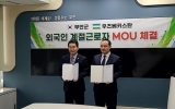 완주 남재옥 기자2026. 01.26[정보신문 = 남재옥 기자] 부안군은 지난 23일 농업 분야 외국인 계절근로자 도입 확대를 위해 우즈베키스탄 안디잔주와 업무협약(MOU)을 체결했다고 밝혔다. 군은 현재 베트남과 라오스 등 2개국과 협약을 통해 공공형 외국인 계절근로자를 도입하고 있으며 이번 우즈베키스탄과의 추가 협약을 통해 영세농가에게 더욱 힘이 될 수 있도록 공공형 계절근로자 프로그램 확대를 위해 노력하고 있다. 또 다양한 국가와 MOU 체결을 추진해 부족한 농번기 인력을 충원하고 안정적인 근로환경을 만드는데 적극 나설 예정이다. 이번 협약의...