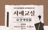 화순 남재옥 기자2026. 03.23[정보신문 = 남재옥 기자] 화순군(구복규 군수)은 23일 화순군 능주면에 위치한 화순예술인촌에서 성인을 대상으로 한 ‘서예 교실’ 프로그램을 운영하고 수강생을 모집한다고 밝혔다. 화순예술인촌 서예 교실은 기초부터 창작까지 단계적으로 배울 수 있도록 구성됐다. 서예를 통해 개인의 심신 수양과 정서적 안정, 집중력 향상 등 삶의 질을 향상에 도움을 줄 것으로 기대된다. 또한 지역 주민의 문화활동 참여 확대와 지역 문화 활성화에도 기여할 전망이다. 서예 교실은 4월 1일부터 12월 23일까지 주 2회(수·금) 오후 1시부터 ...