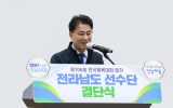 정치 김금덕 기자2025. 10.02[정보신문 = 김금덕 기자] 김태균 전남도의장은 10월 2일 전남도청 왕인실에서 개최된 ‘제106회 전국체전 참가 전남선수단 결단식’에 참석해 출전 선수와 임원들을 격려․응원했다. 결단식에는 김영록 도지사와 전남도의회 도의원, 선수․임원 등 200여 명이 참석한 가운데 선수단 영상 상영에 이어 참가계획 보고, 선수단기 수여, 선수대표 선서, 격려금 및 체육진흥성금 전달 순으로 진행됐다. 이날 김태균 의장은 축사를 통해 “성과가 중요한 만큼, 전국체전에서 좋은 성과를 낼 수 있도록 전라남도의회에서도 열...